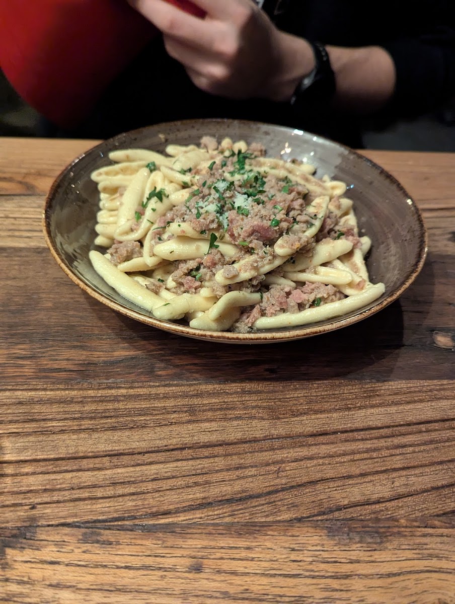 Had a great experience at Red Rabbit. I ordered the happy hour oysters, wings, and the cavatelli (recommended by the server). The oysters were surprisingly fresh and delicious — impressive for being so far from the ocean. The wings were baked, not greasy, and really flavorful. The cavatelli was good as well. The server was friendly and helpful, and the interior has a nice, warm atmosphere. Overall, a solid spot.