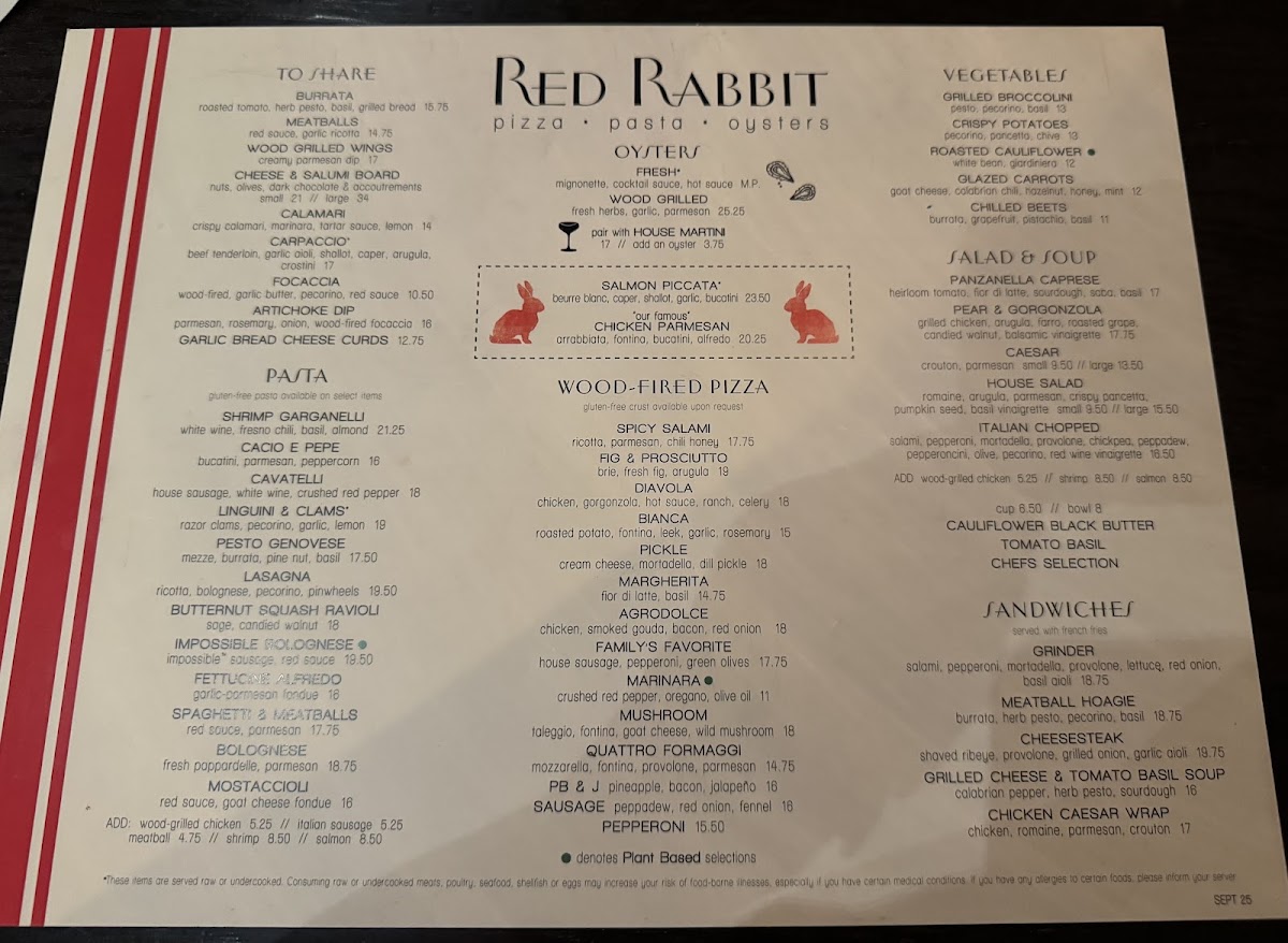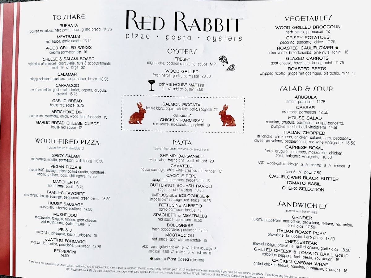 Red Rabbit Minneapolis Menu